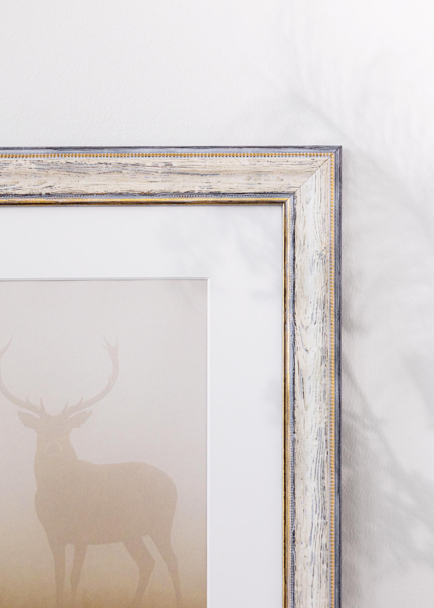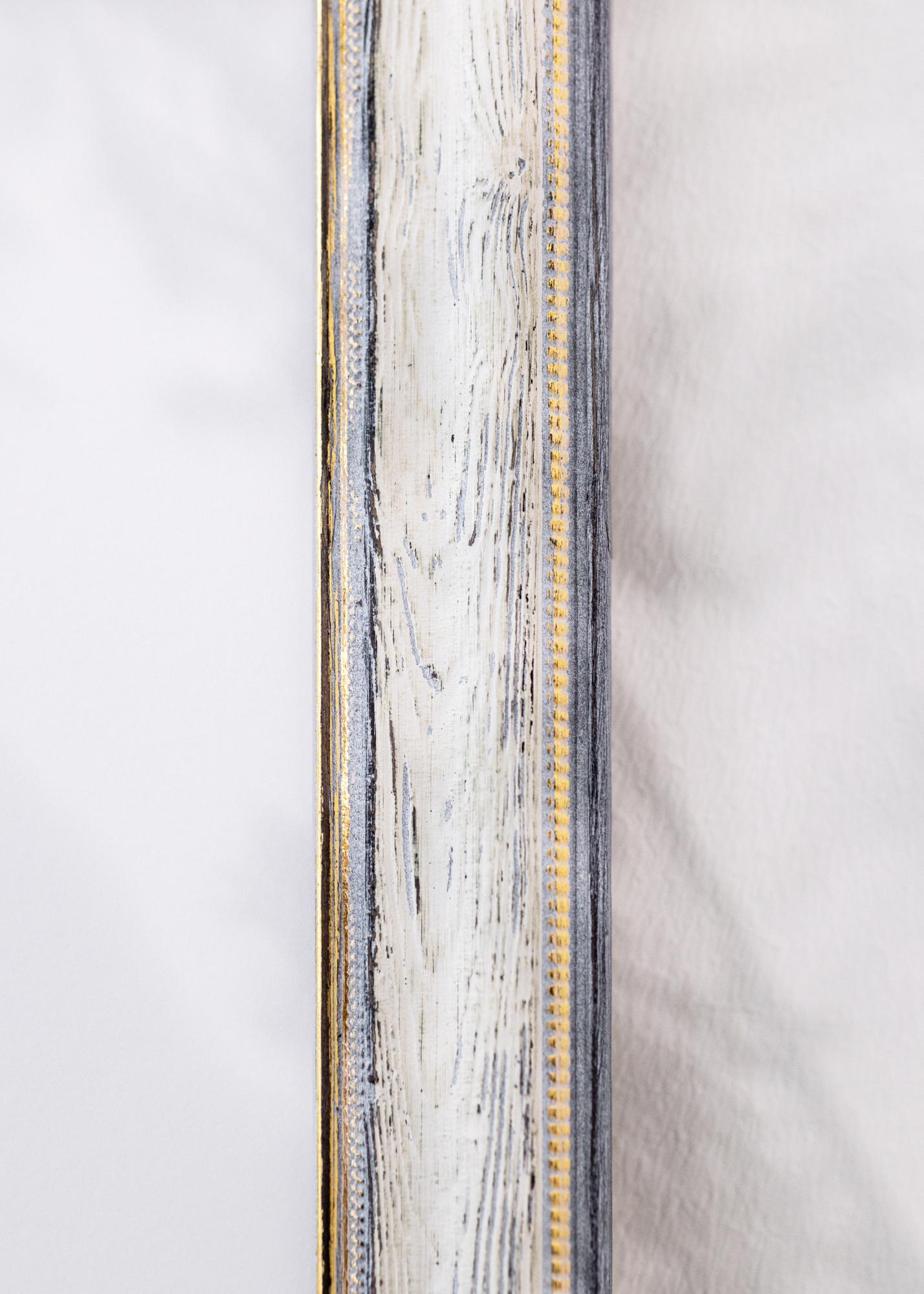 Ovaj elegantni okvir za fotografije savršen je spoj vintage nadahnuća i moderne funkcionalnosti. Sa svojim rustičnim bijelim i sivim drvenim završetkom, okvir nudi šarmantno ostarjeli izgled koji se odlično uklapa u seoski i shabby chic interijer. Suptilni zlatni detalji duž unutarnjeg ruba daju klasičan dodir koji ističe vaše fotografije i umjetnička djela s bezvremenskim i sofisticiranim osjećajem.