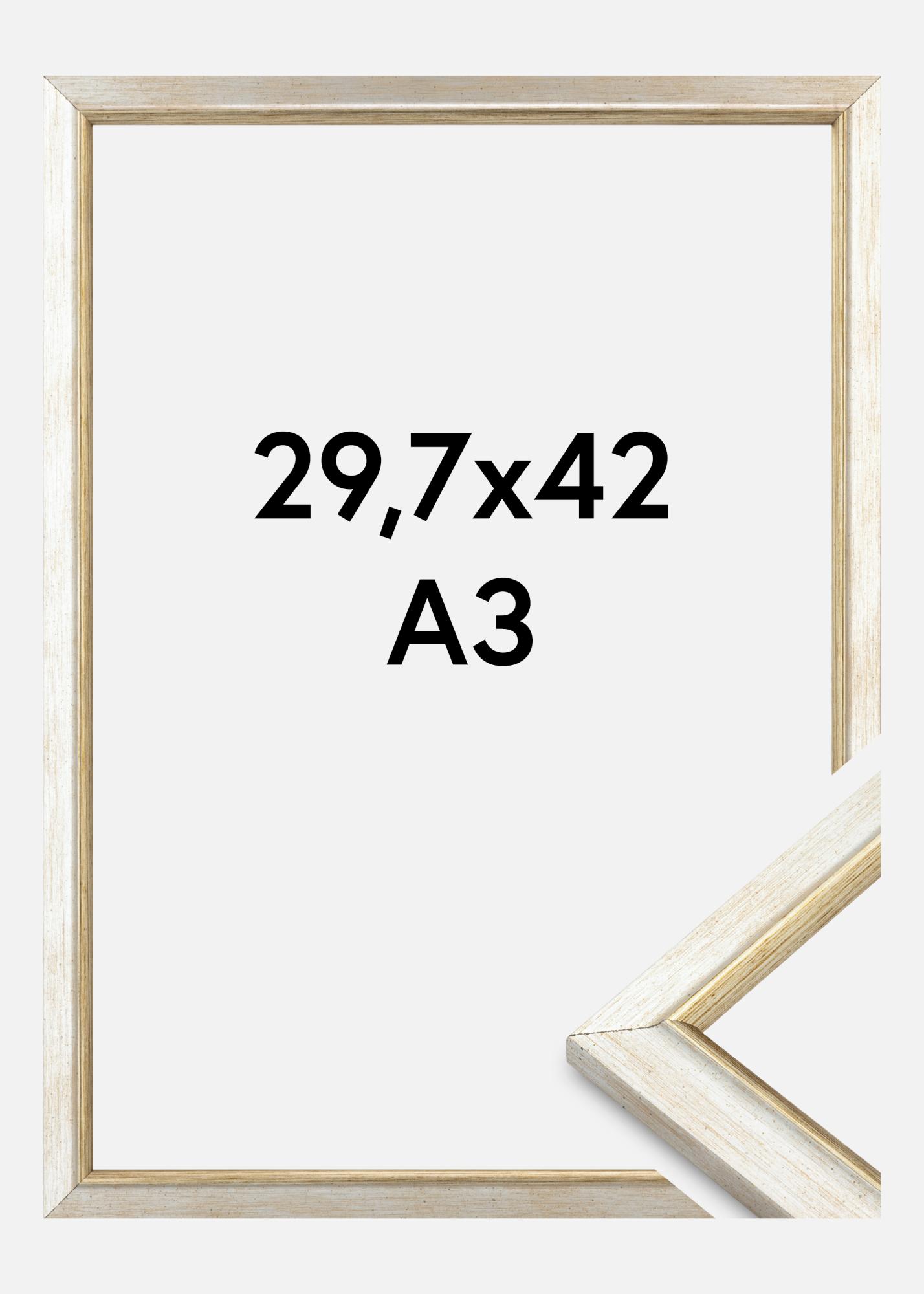 Ovaj elegantni srebrni okvir za fotografije savršena je kombinacija modernog dizajna i klasičnog šarma. Sa svojim suptilnim brušenim finišem, daje sofisticiran dodir vašim slikama i umjetničkim djelima. Okvir je izrađen od drva i ima širinu okvira od 19 mm i dubinu od 15 mm, što pruža stabilan i robustan osjećaj. Ovaj okvir idealan je za motive veličine 29,7x42 cm (A3), što ga čini savršenim za prikazivanje vaših omiljenih slika ili umjetničkih djela.