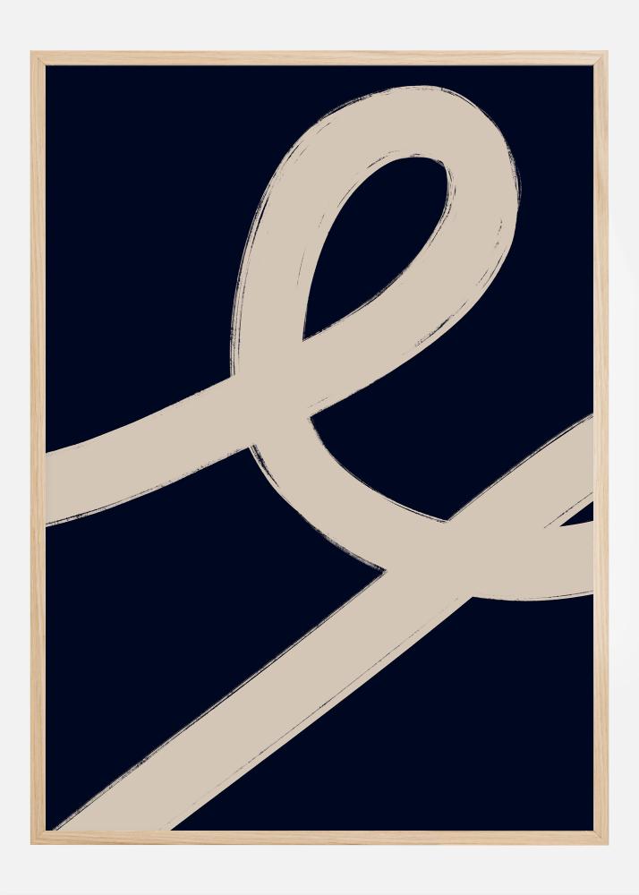 Ovaj minimalistički i suvremeni poster hvata bit skandinavskog dizajna sa svojom čistom i jednostavnom kompozicijom. Velika, bež vijugava linija igra protiv tamnoplave pozadine i stvara sliku koja je i umirujuća i vizualno zanimljiva. Kontrast između oba elementa je sofisticiran i daje snažan grafički efekt koji ističe ljepotu apstraktne umjetnosti.