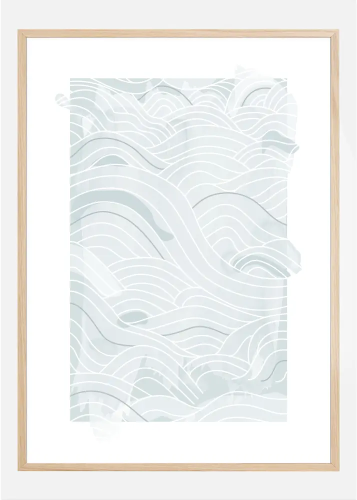 Morski poster s mekim plavim apstraktnim linijama i valovima na bijeloj pozadini. Različite nijanse plave i različite debljine linija kombiniraju se kako bi stvorili ove valovite oblike preko stranice. Pustite svoje misli da lutaju i dopustite da vas ponese ovaj mekani morski uzorak.