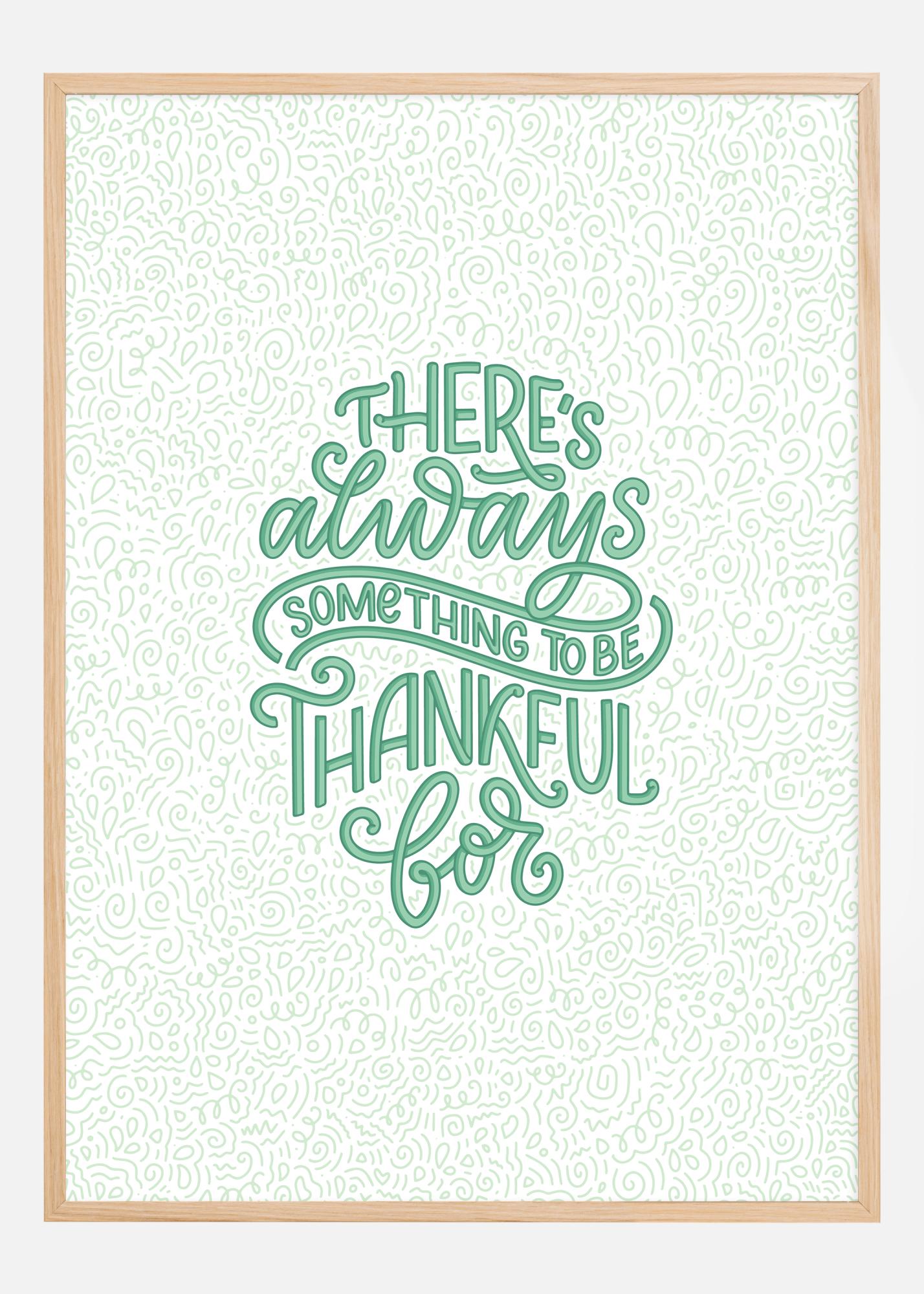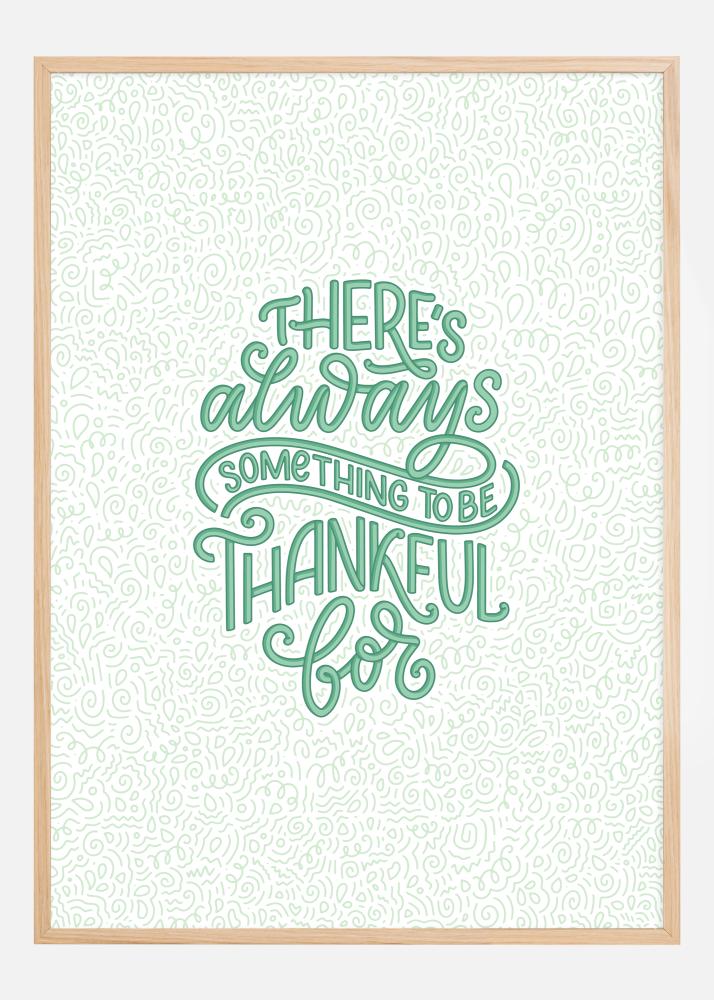 Ovaj inspirativni poster je poziv na optimizam i zahvalnost, savršen za širenje pozitivnih vibracija u vašem domu ili na radnom mjestu. S živopisnim zelenim tekstom koji glasi "There's always something to be thankful for" na detaljno bijeloj pozadini punoj složenih linija i uzoraka, poziva na pozitivan pogled na život i razmišljanje.