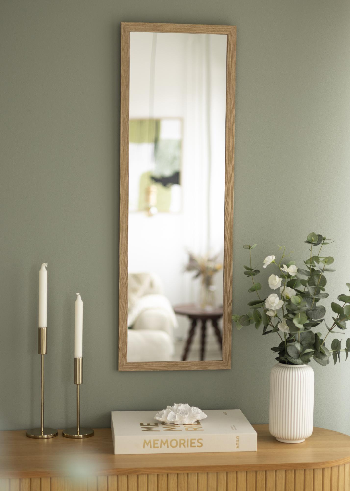 Ovo ogledalo za vrata ima elegantan i moderan drveni okvir od Hrast koji unosi toplinu i prirodan dojam. Mat površina čini da Ogledalo djeluje diskretno, a istovremeno dodaje strukturu i karakter prostoru.
