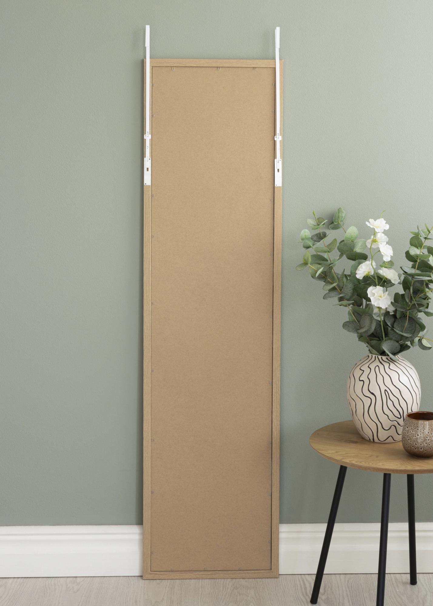 Ovo ogledalo za vrata ima elegantan i moderan drveni okvir od Hrast koji prostoru daje topao i prirodan dojam. Mat površina čini da Ogledalo djeluje diskretno, a istovremeno unosi teksturu i karakter u prostoriju.