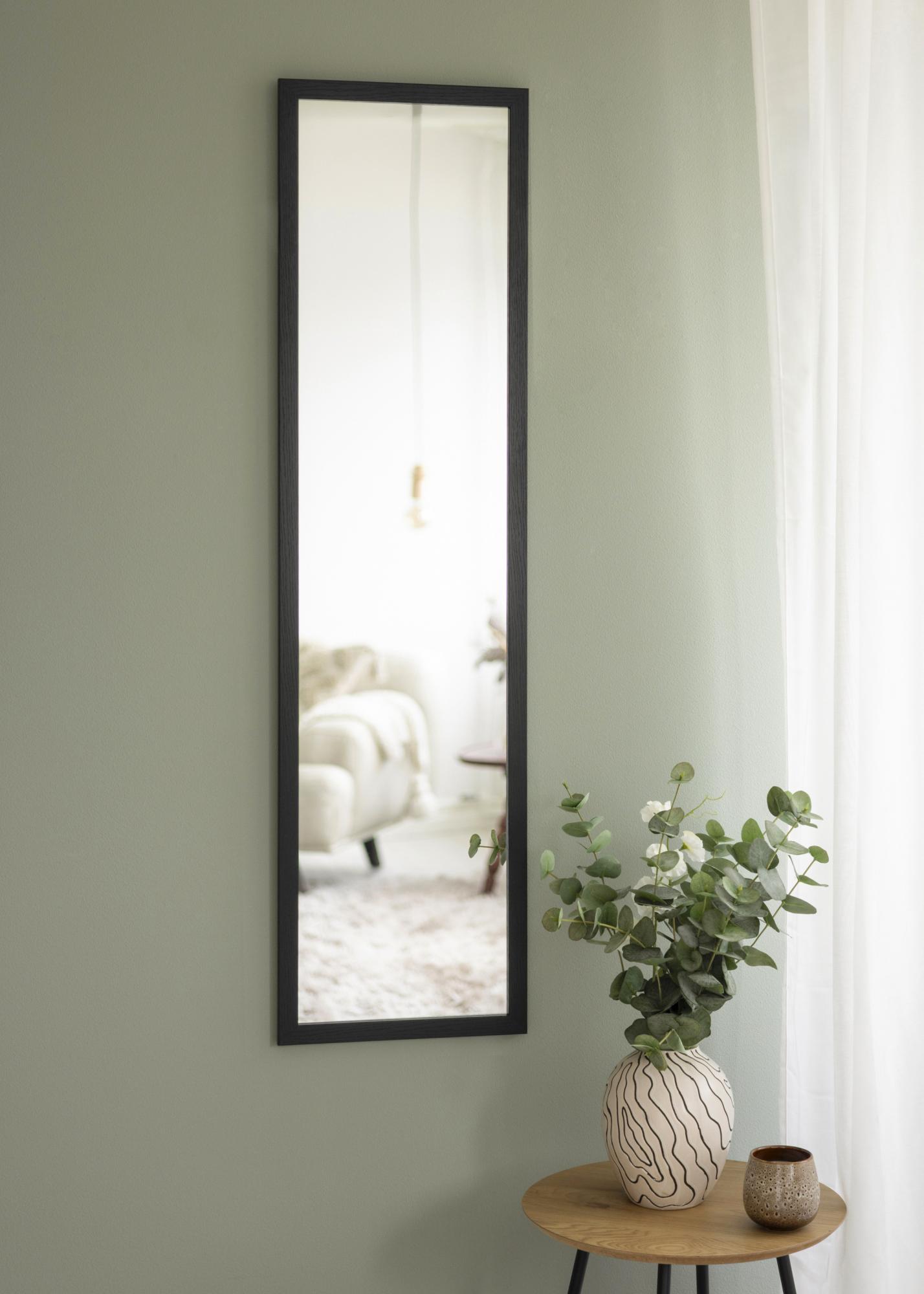 Ovo ogledalo za vrata ima elegantan i moderan drveni okvir u Crna boji, što prostoru daje topao i prirodan dojam. Mat površina čini da Ogledalo djeluje diskretno, a istovremeno unosi teksturu i karakter u prostoriju.