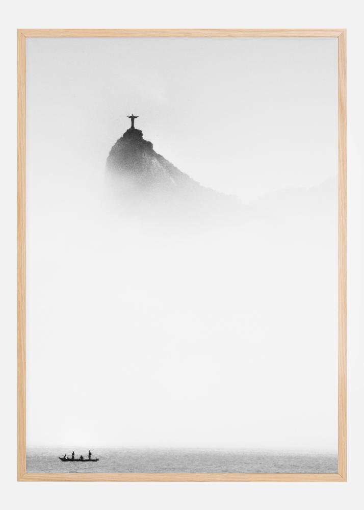Religiozni poster s kipom Isusa na vrhu visoke stijene. Duševni osjećaj okružuje ovu sliku dok mali čamac plovi daleko ispod visoke točke. Bijela magla ispunjava sliku i dopušta križu da se uzdigne iz oblaka na trijumfalan način.