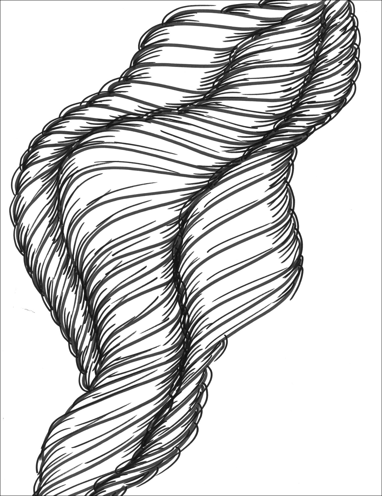 Apstraktni poster s kovitlaćim crnim linijama koje se prepliću kako bi stvorile oblik tornada. Tri crne linijske spirale uvrću se zajedno na bijeloj pozadini. Debele i tanke linije stvaraju gotovo pokretnu sliku koja vodi oko dok se kreće preko djela.