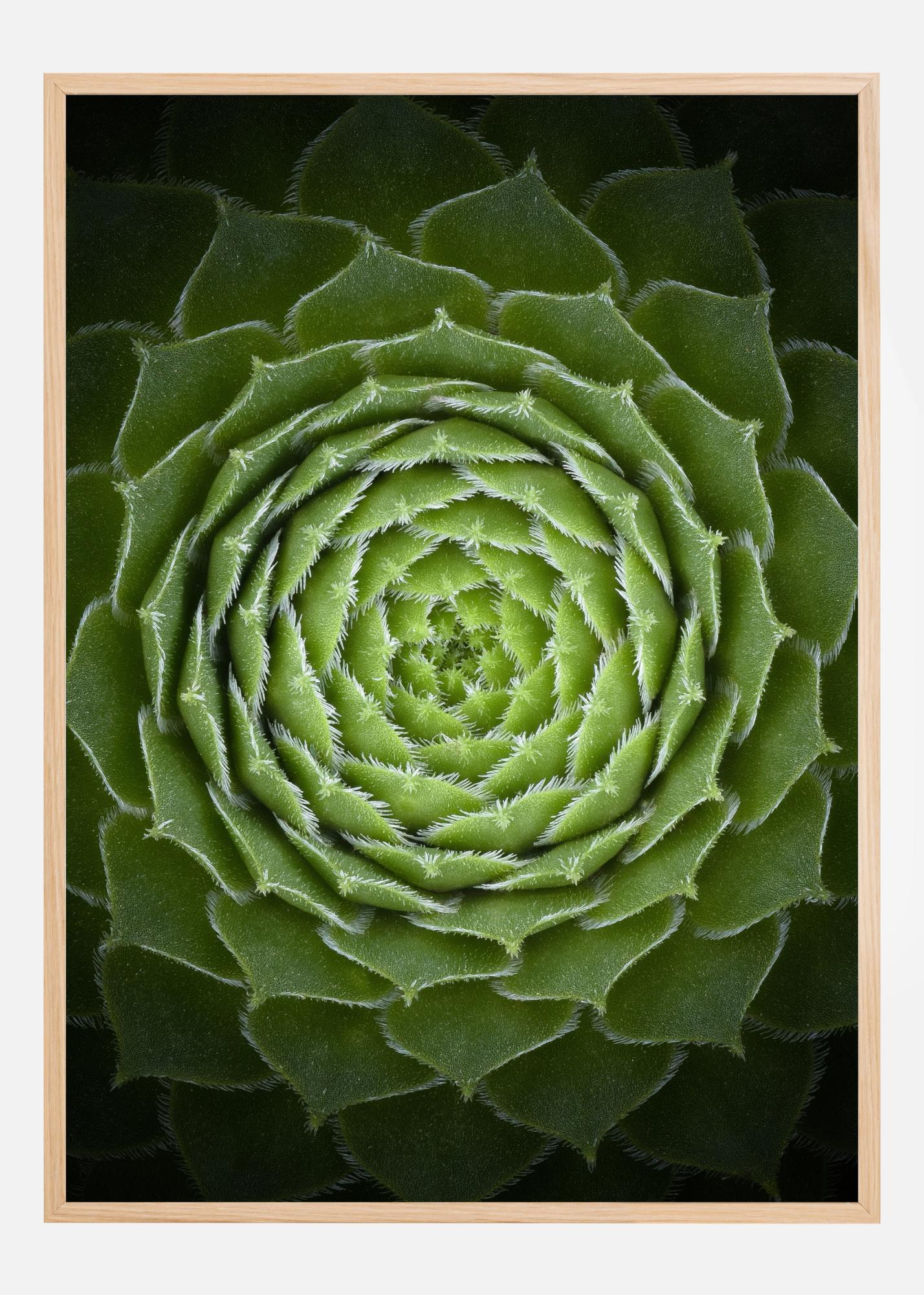 Poster izbliza sa sočnim povrćem. Svijetlozeleni listovi kovitlaju se u uzorak u obliku ruže. Vrhovi svakog lista u rozeti su u oštrim detaljima, a male bijele šiljke mogu se vidjeti kada gledate u sve prstene ove živo zelene biljke.