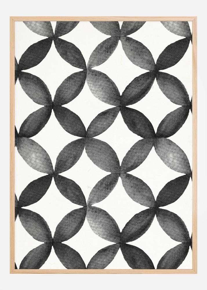 Ovaj poster je oda estetskoj snazi geometrijskih uzoraka. Neprekidni motiv sastoji se od niza međusobno povezanih listova biljaka u gracioznim crnim i bijelim nijansama. Oni stvaraju stalan uzorak koji je i fascinantan i opuštajući za promatranje. Ovaj print spaja tradicionalnu inspiraciju iz prirode s modernim grafičkim stilom, čineći ga sofisticiranim dodatkom u svakom domu.