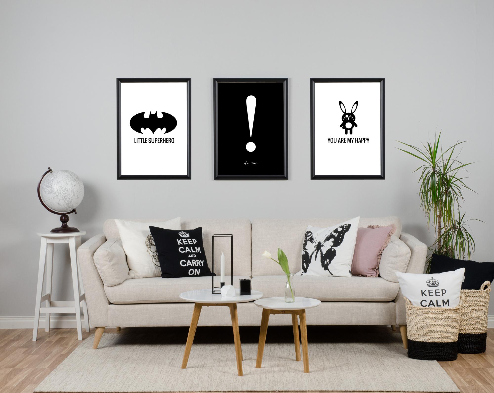 Nanananananananana Batman! Poster superjunaka za sve male šišmiše za ukrašavanje sobe. Grafička crno-bijela ilustracija, s elegantnim fontom, uklapa se u sve stilove interijera, ali naravno najbolje pristaje u vlažnim špiljama. Kombinirajte poster s nekim od drugih otisaka u istom stilu kako biste stvorili seriju - Dino Omiljeni, Slon San, Pas Mali, Superjunak ili Zec Sretan.
