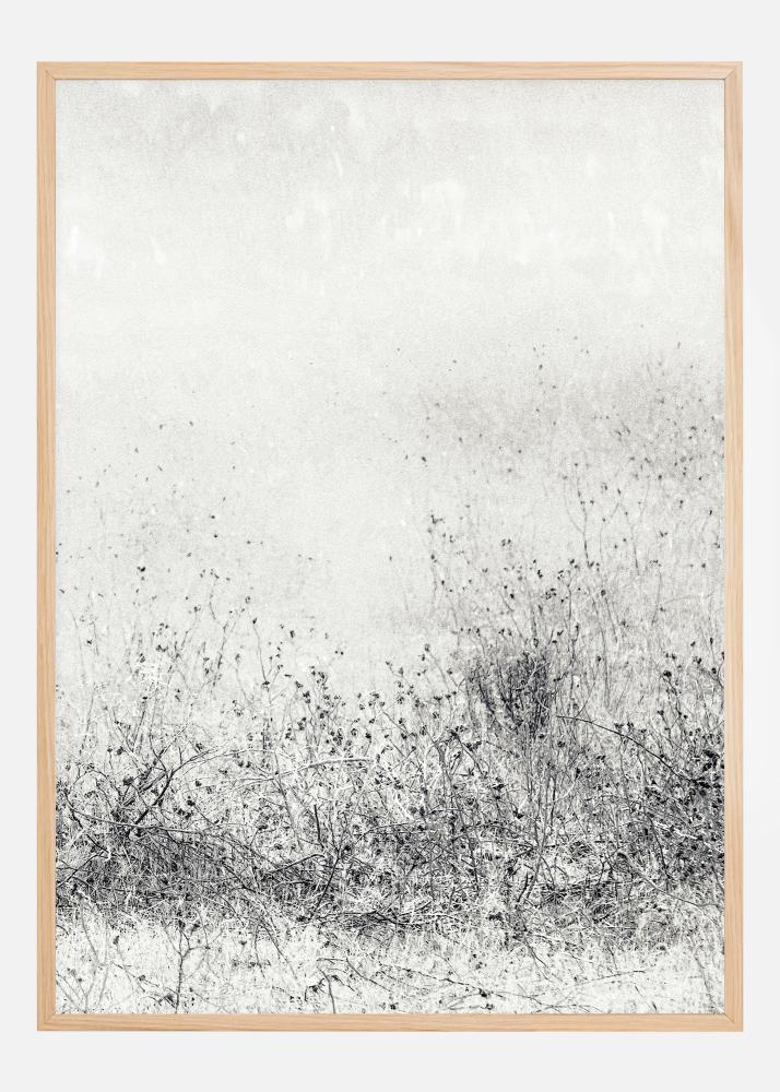 Umjetnički poster s beskrajnim poljima trave u crno-bijeloj tehnici. Ogrebene točke i linije čine da izgleda kao zamršeni gusti grm trave i kupina. Podsjeća na sliku Jacksona Pollocka sa svojim čudnim škrabotinama. Linije se jasno i oštro ističu na bijeloj pozadini.