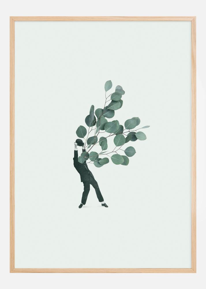 Ovaj umjetniÄki i elegantni poster prikazuje minimalistiÄki siluet osobe koja nosi bujni buket eukaliptusovih listova, vizualni izraz koji je jednako jednostavan koliko je moÄan. Crni obris figure na svijetloj pozadini oÅ¡tro kontrastira s mekim zelenim nijansama eukaliptusovih listova, stvarajuÄi osjeÄaj mirne prirode u suglasju s ljudskom prisutnoÅ¡Äu.