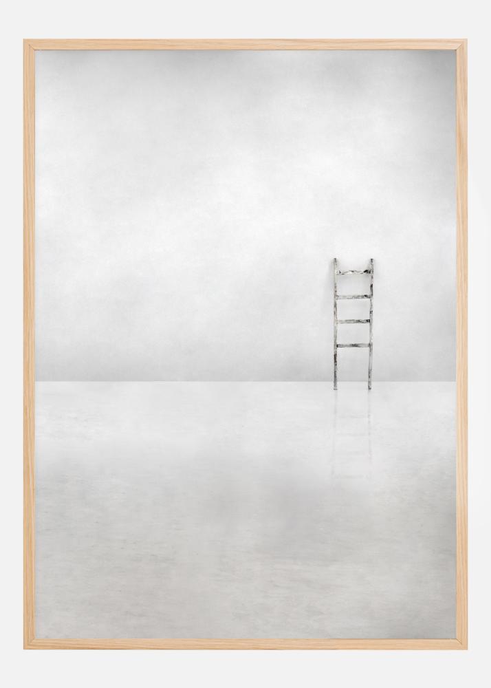 Minimalistički poster s ljestvama koje se oslanjaju na bijelu pozadinu. Ove solitarne ljestve, nazvane društvene ljestve, također su postavljene na bijeli pod. I zid i pod su u istim bijelim i sivim tonovima, što čini da su ljestve oštro označene u tamnijim tonovima. Zabavite se interpretiranjem značenja ove slike.
