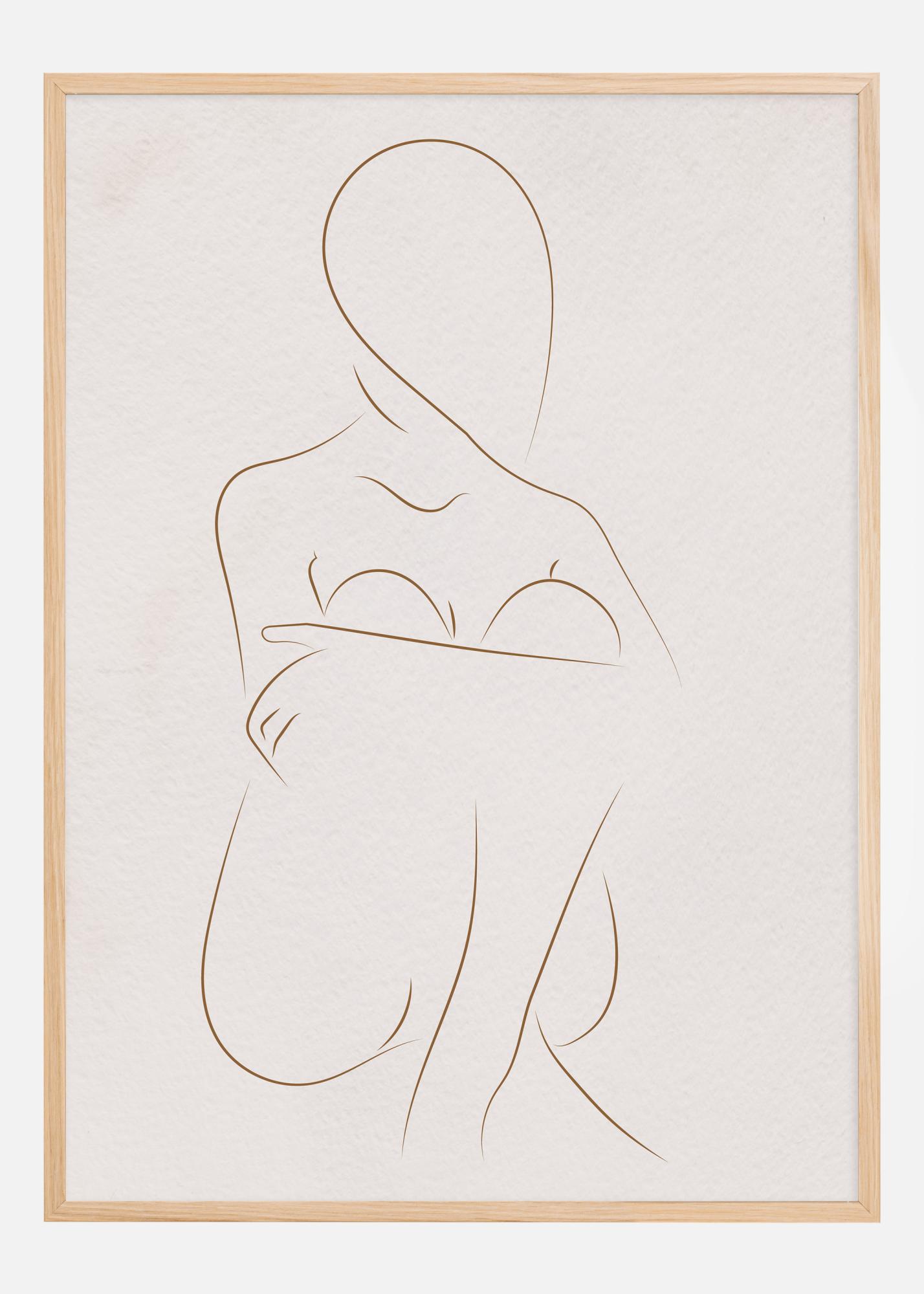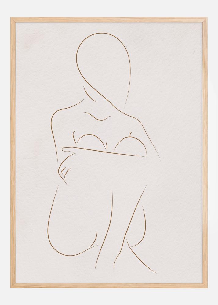 Ovaj elegantni i minimalistični poster prikazuje žensku figuru stvorenu tankim linijama koje očaravaju svojom jednostavnošću. Linearna umjetnost koristi suptilnu i ogoljenu estetiku kako bi prikazala ženski oblik, ostavljajući prostor za promatračevu vlastitu interpretaciju i maštu. Meke konture i ogoljeni izraz daju moderan i elegantan dojam koji se dobro uklapa u minimalistički ili skandinavski dizajnerski stil.