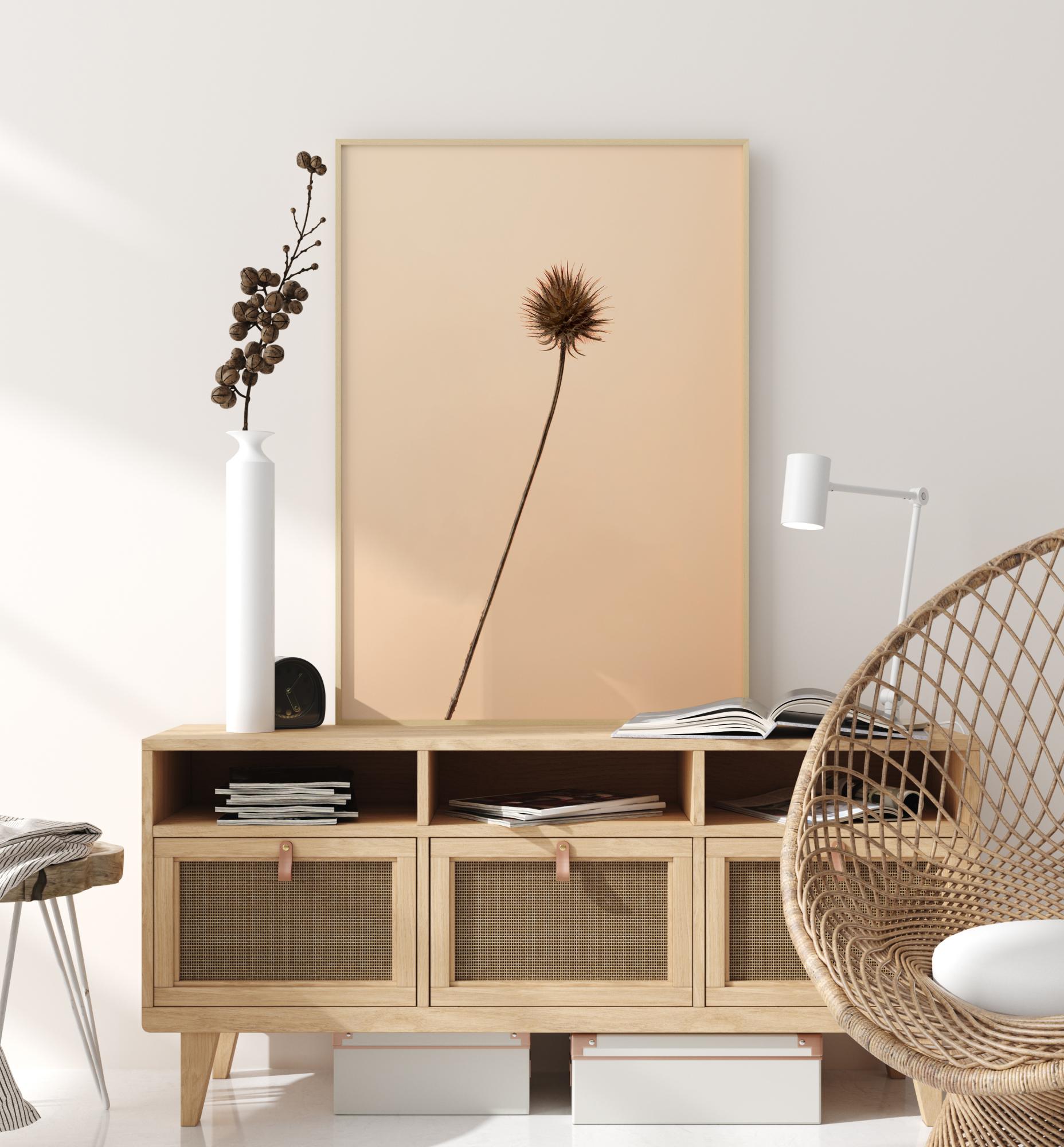 Jednostavan poster s cvijećem s osamljenim čičkom na blijedom nebu. Stoji visoko, ponosno i samo, ponesite ovaj print kući i podsjetite se svakog dana da možete postići sve što želite.