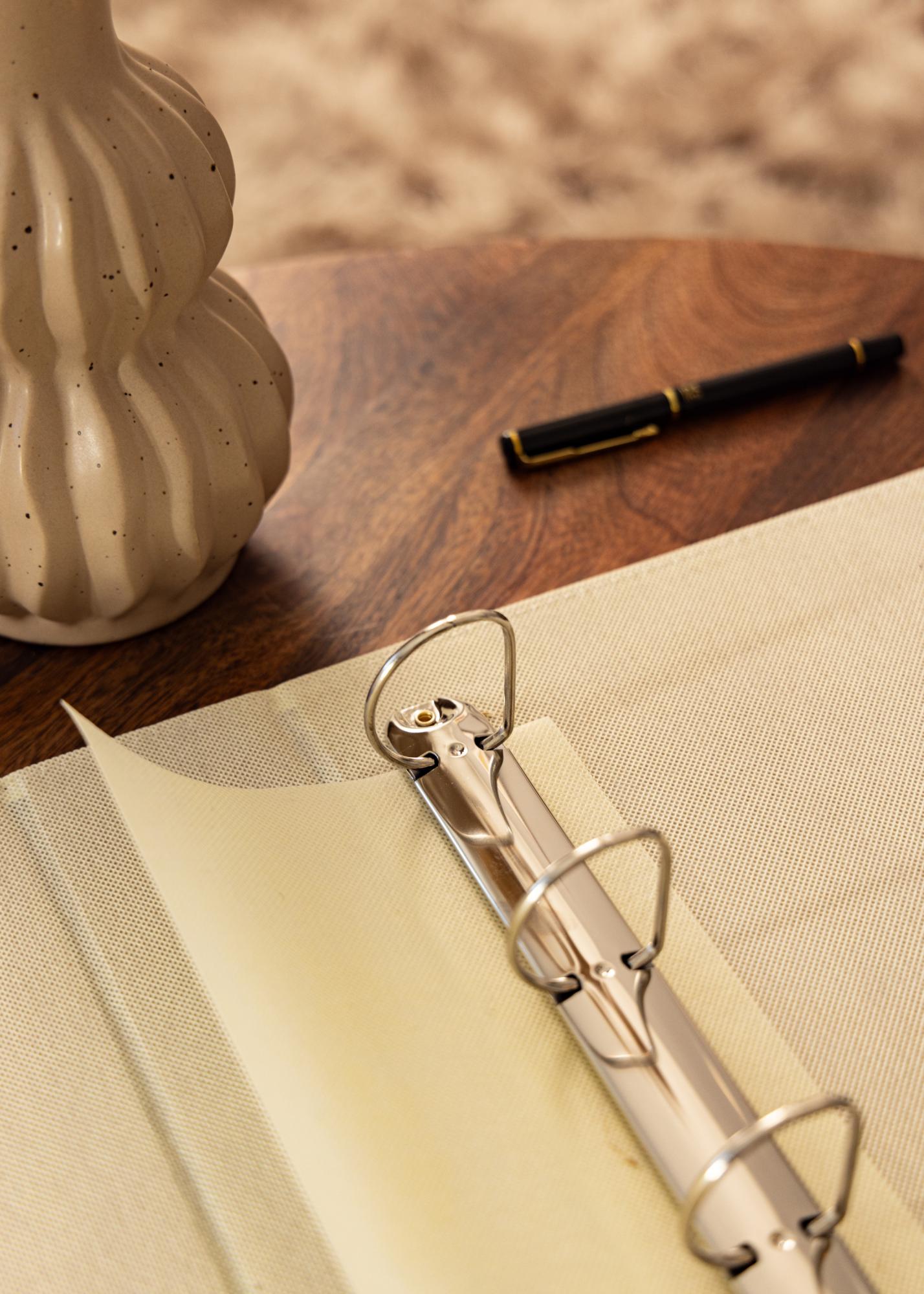 Together Ringpärm Smeđa A4 je elegantan i praktičan fascikl za listove albuma u formatu A4. Savršeno za organiziranje i čuvanje vaših fotografija ili drugih važnih dokumenata na lijep i praktičan način. Smeđa boja daje klasičan i bezvremenski dojam.