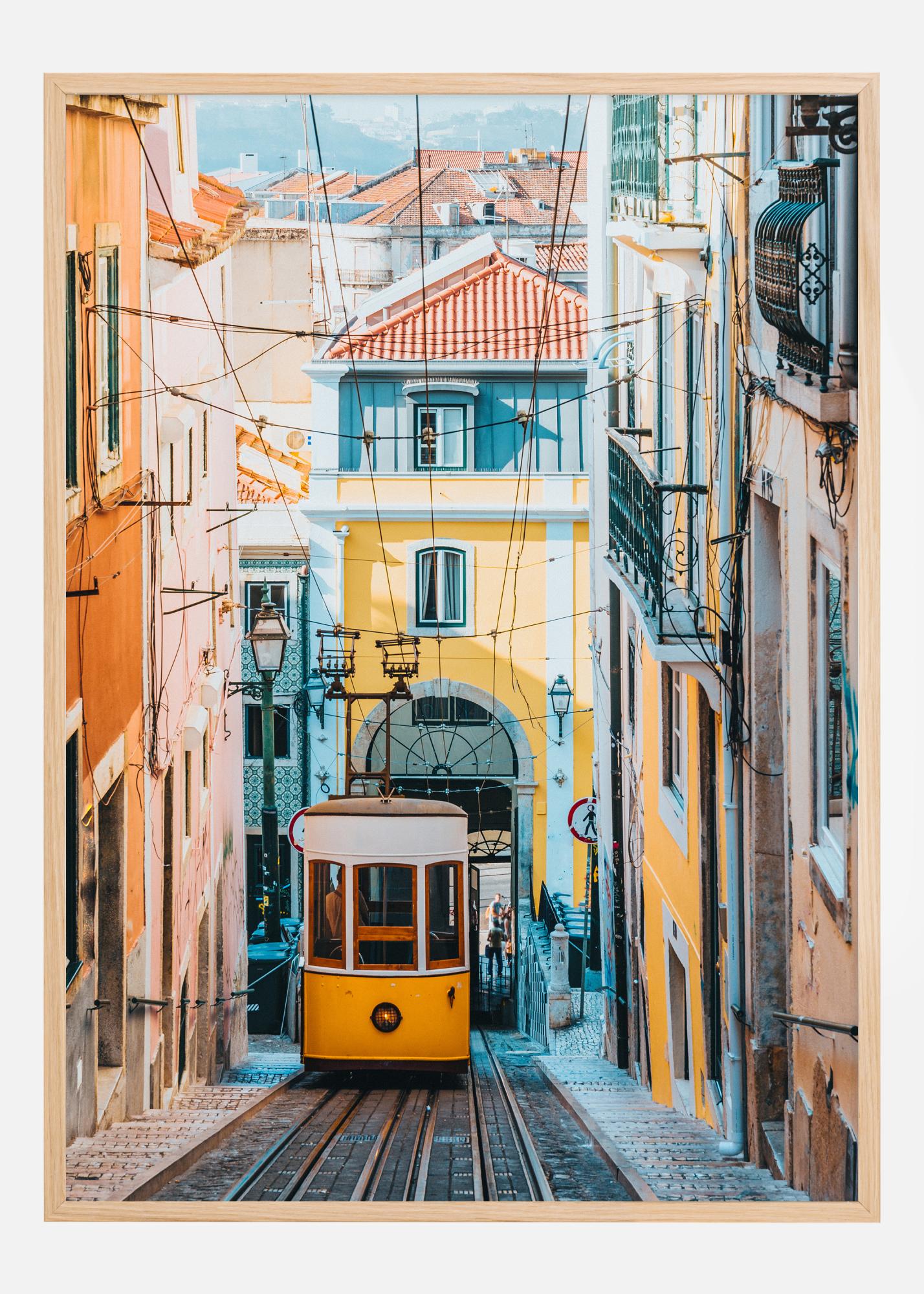 Ovaj šareni i slikoviti poster prikazuje šarmantnu i živopisnu atmosferu europske gradske ulice, punu povijesti i svakodnevne magije. U prvom planu vidimo klasični žuti tramvaj, ikonični simbol javnog prijevoza grada, koji se mirno kreće uz uske ulice okružene tradicionalnom arhitekturom u toplim tonovima žute i crvene boje. Ovaj poster je poput ulaza u neki drugi svijet i poziva nas da uđemo i otkrijemo tajne grada.