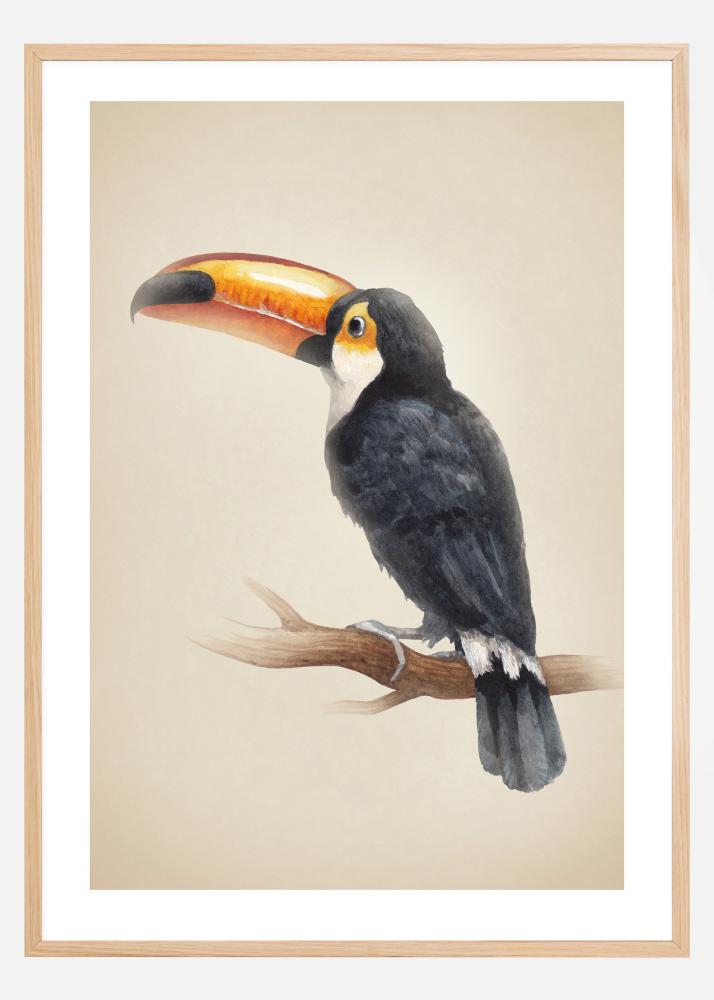 Slatki portret postera s tukanom velikog kljuna. Ova slika ptice prikazuje svijetložuti kljun koji se ističe na sivoj pozadini. S lagano okrenutim leđima, ova ptica blista sa svojim sjajnim crnim perjem na ovoj jednostavnoj slici. Uparite s drugim posterom s tropskim pticama kako biste stvorili savršen set.