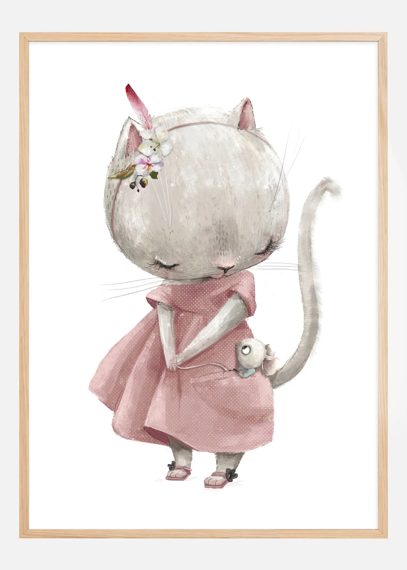 Ovaj šarmantni poster prikazuje slatku scenu neobičnog prijateljstva; mali miš koji se odmara sigurno u krilu mačke, oboje odjeveni u svečanu odjeću. Mačka je lijepo odjevena u ružičastu haljinu, s elegantnim cvjetnim ukrasom na glavi. Prekrasna akvarelna slika daje životinjama mekoću i toplinu koja zrači prijateljstvom i povjerenjem.