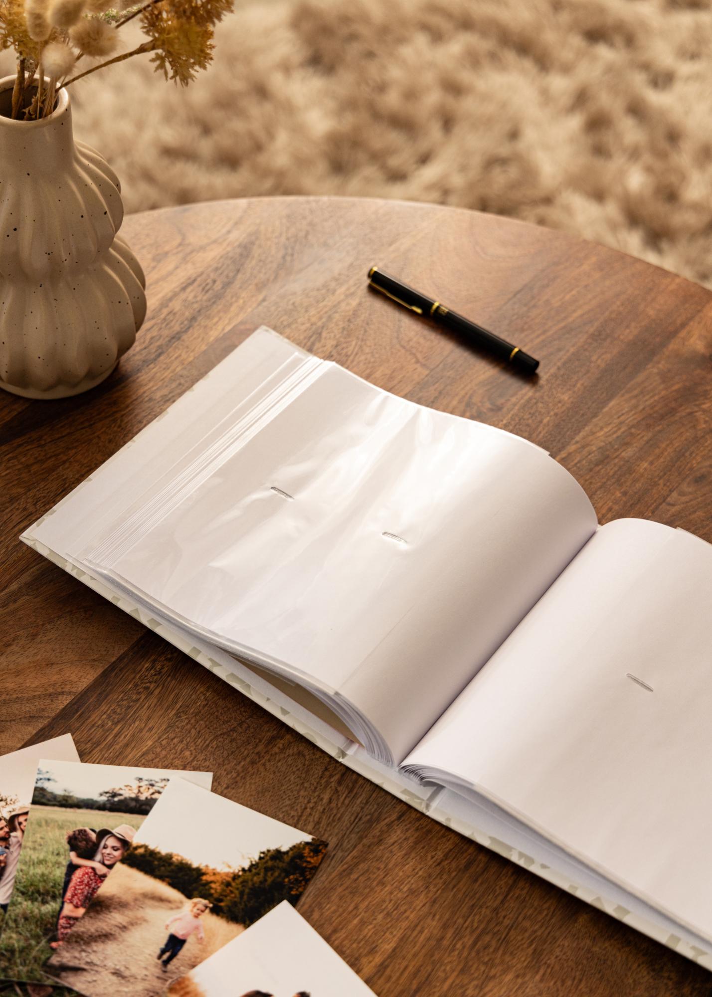 Korice albuma su bijele, što daje bezvremenski i klasični osjećaj koji se uklapa u svaki dom. Orijentacija slike je vodoravna, što pruža harmoničan prikaz vaših fotografija. Bijele stranice stvaraju čistu pozadinu koja ističe svaku sliku na najbolji način.