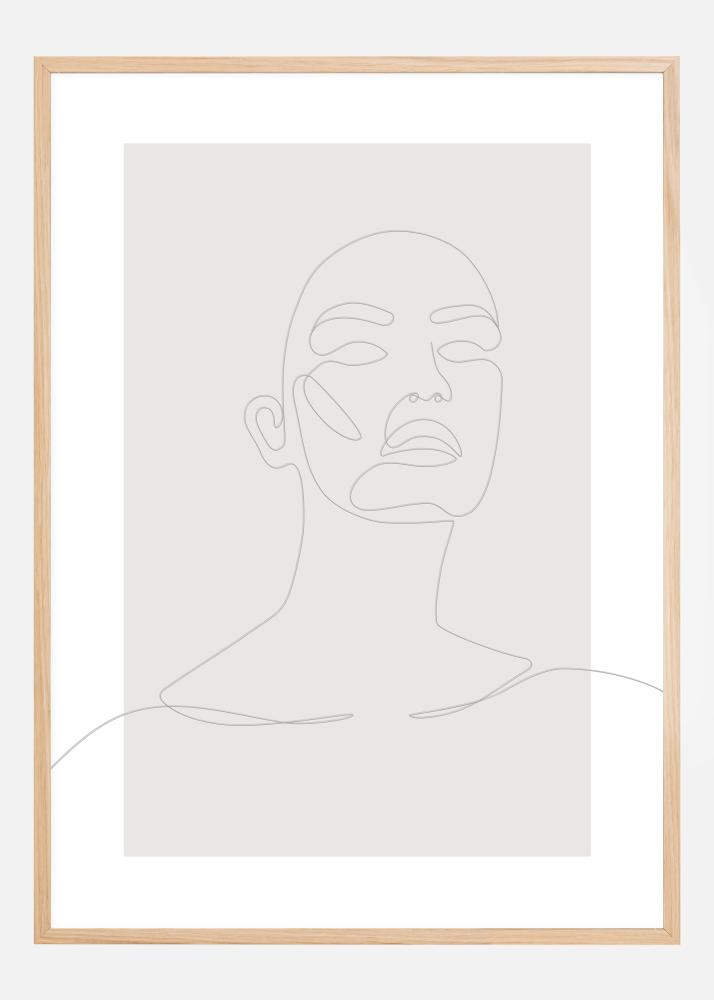 Jedinstveni apstraktni portretni poster s licem koje se sastoji od jedne linije. Tanka crna linija se bez napora kreće preko stranice kako bi stvorila cijelo lice u jednom potezu. Blaga siva pozadina osigurava da pažljivo pogledate sliku kako biste cijenili sve detalje.