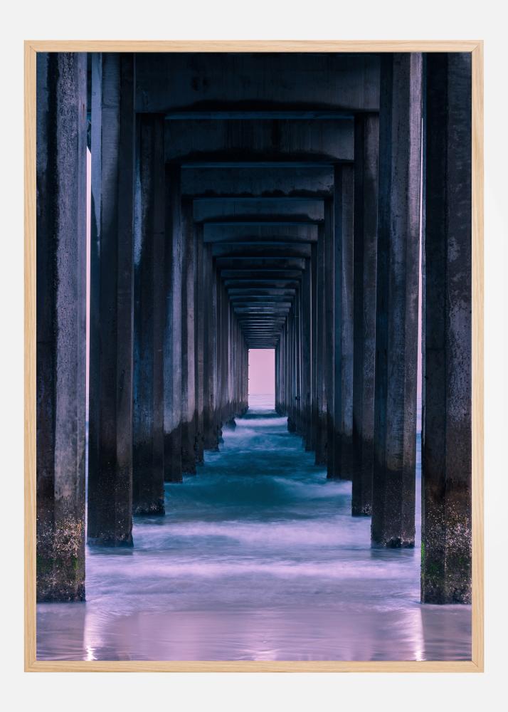 Tamna poster s hodnikom koji vodi do svjetla na kraju tunela. Debeli tamnoplavi stupovi obrubljuju svijetloplavu stazu, iako je strop iznad također prilično mračan i zlokoban. Slijedite svjetliju stazu kako biste došli do svijetlog svjetla u daljini i dodali dubinu prostoriji također.