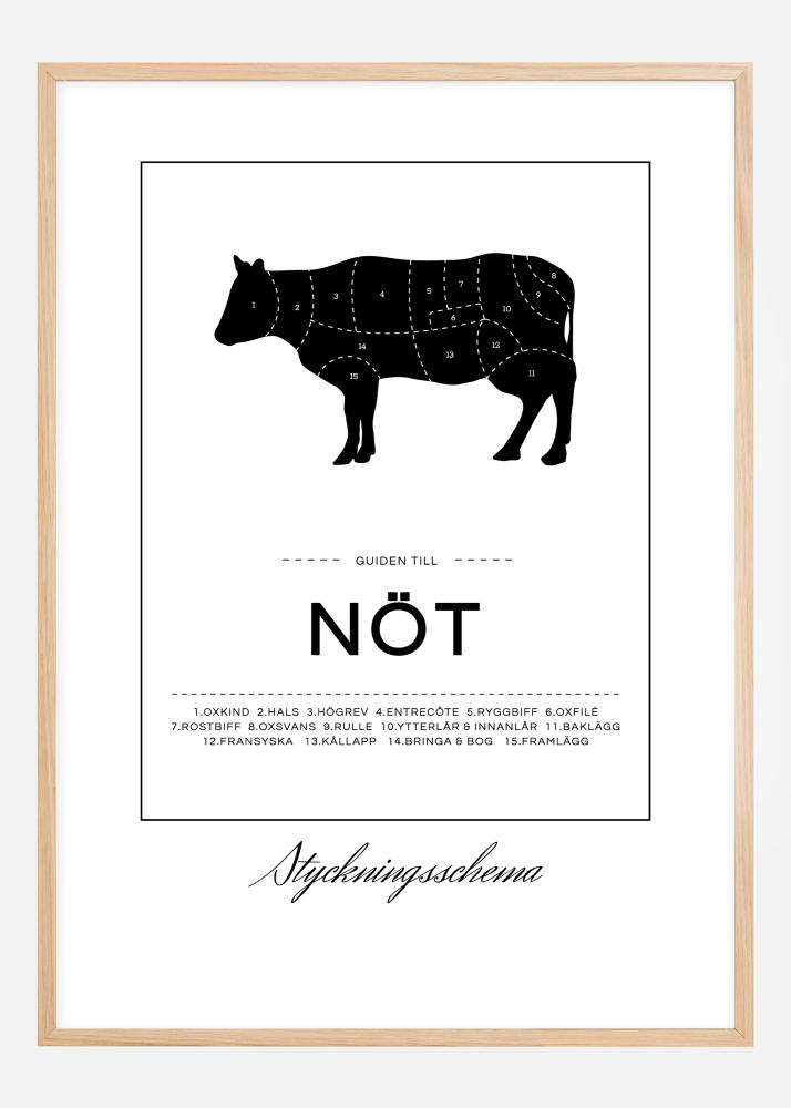 Shema rasijecanja nije samo za profesionalne mesare! Ovaj elegantni poster ima motiv crne krave koja je podijeljena sa oznakama koje pokazuju gdje se, na primjer, uzimaju rostbif, rolada i grobni file. Ispod slike nalazi se tekst "VodiÄ za govedinu" zajedno s urednim popisom brojeva razliÄitih dijelova. Oko motiva prolazi tanak pravokutnik, a ispod pravokutnika nalazi se natpis s tekstom "Shema rasijecanja". Crno-bijeli dizajn izvrsno izgleda u kombinaciji sa srebrnim okvirom ili okvirom u vaÅ¡oj omiljenoj boji. Poster je dostupan u nekoliko razliÄitih formata, tako da lako možete pronaÄi onaj koji odgovara upravo vaÅ¡oj kuhinji.