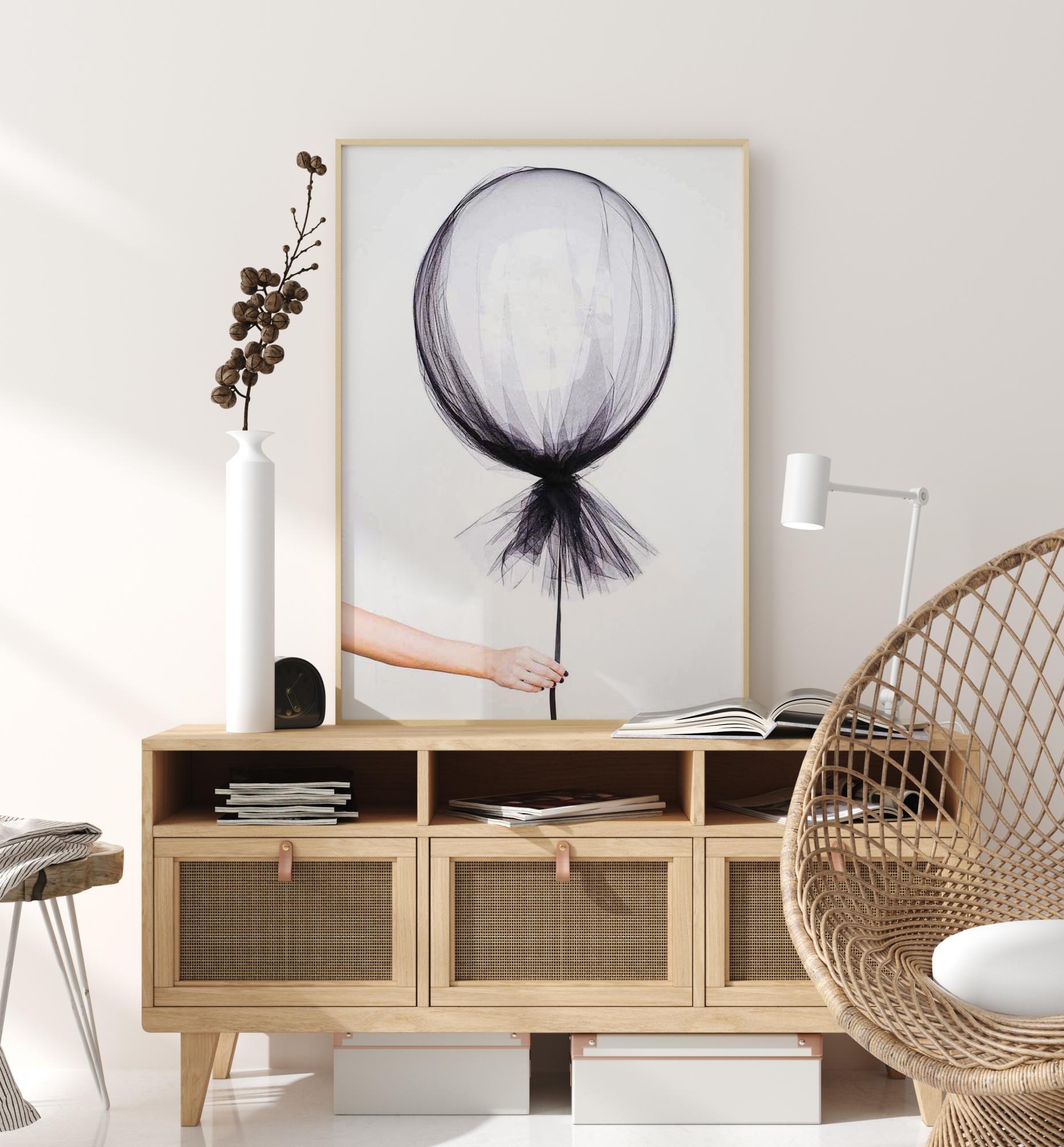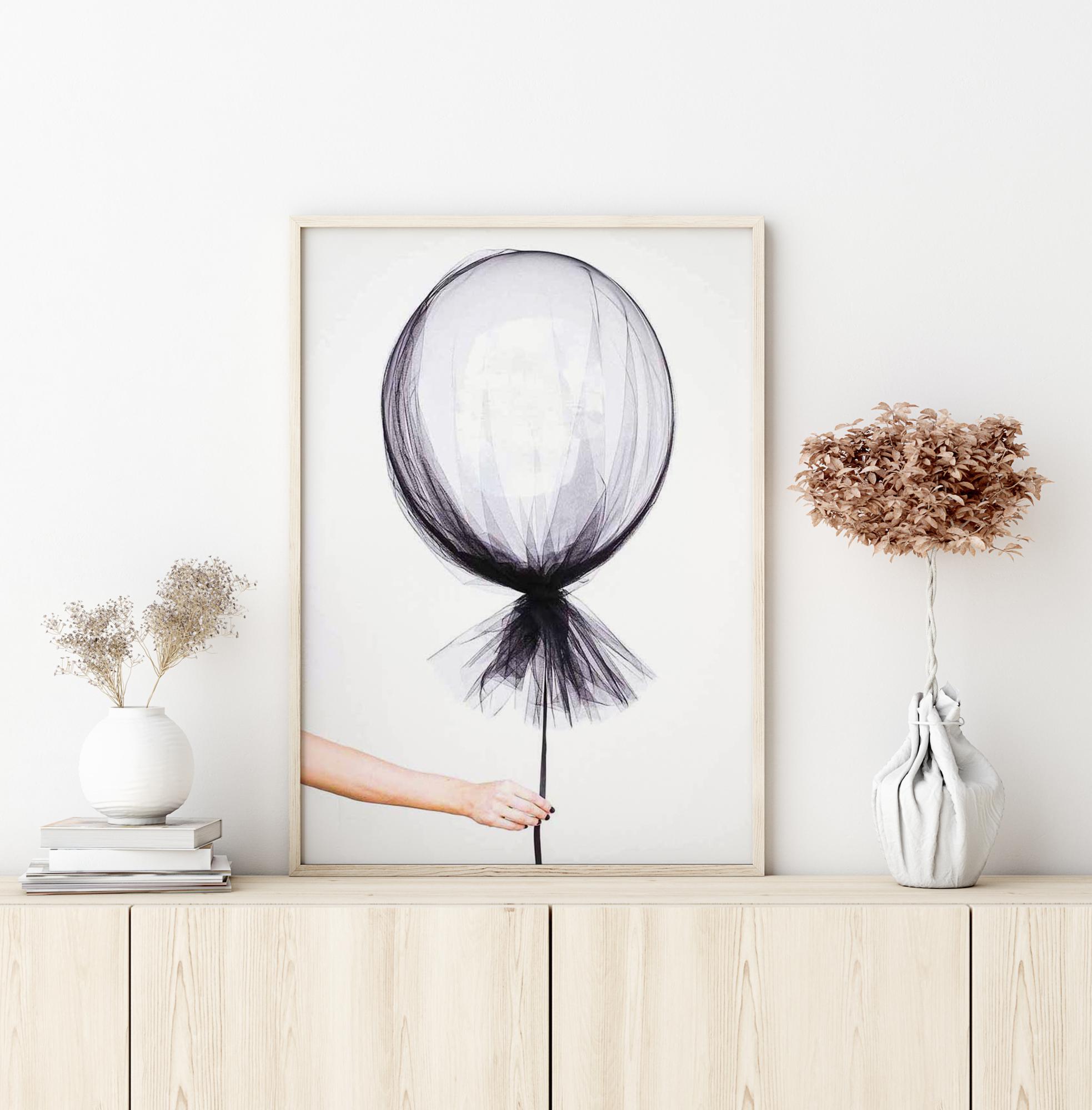 Elegantna fotografska umjetnost ruke koja drži lebdeći balon omotan u tanku prozirnu tkaninu. Šarmantan poster koji odiše prekrasnom mješavinom lagane zaigranosti i nježnog te osjetljivog. Jednako dobro pristaje u dječjoj sobi kao i u modernom domu.