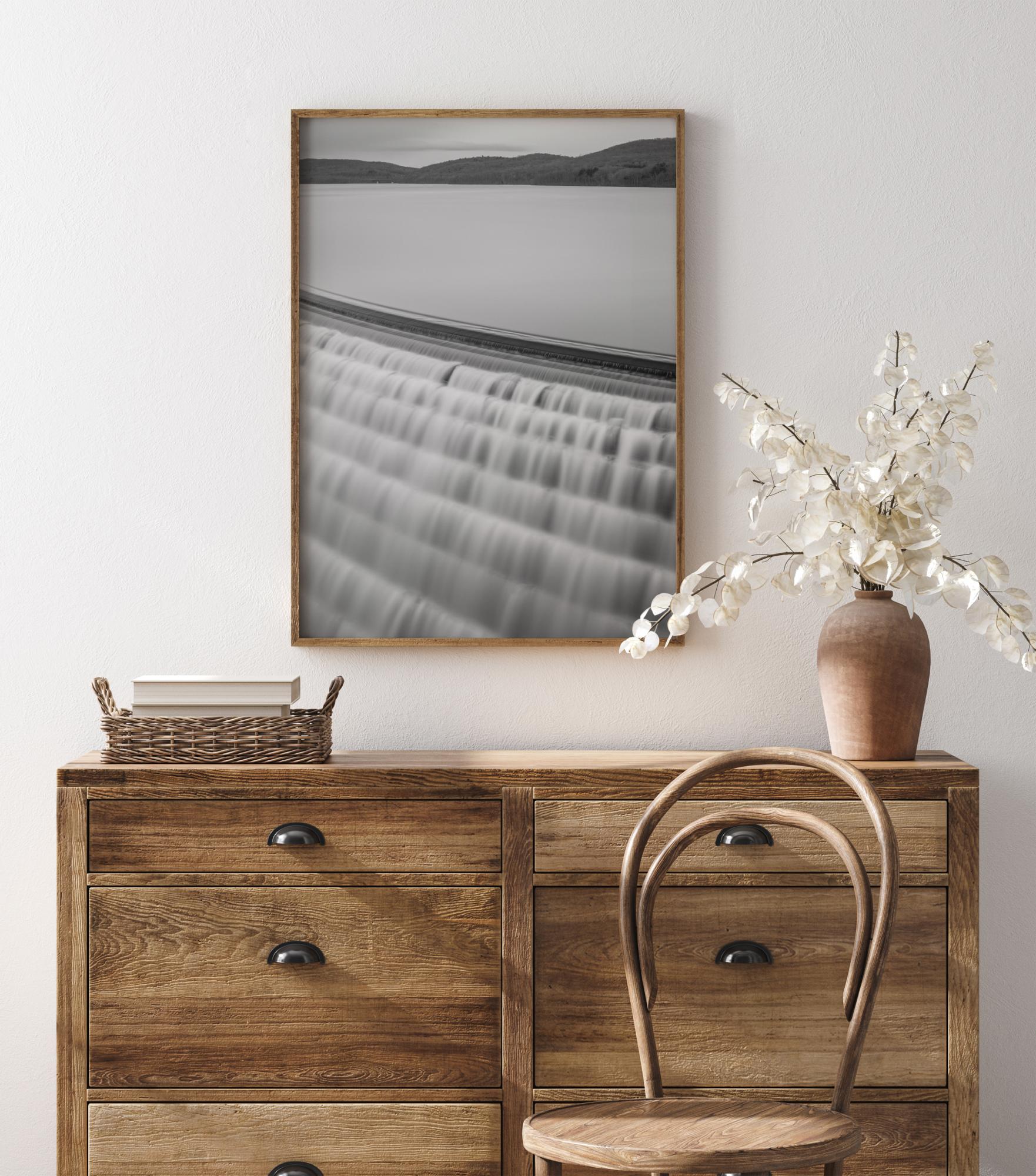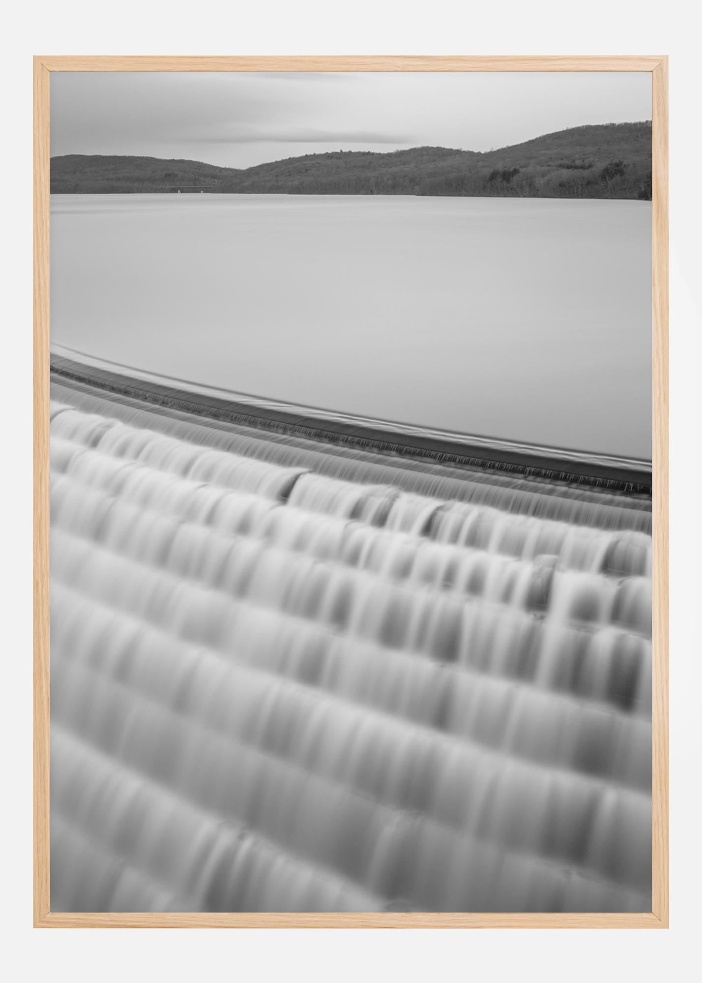 Sivi poster s malim slapovima koji padaju preko umjetnog ribnjaka uz jezero. Mirna siva voda prostire se s malim slapovima koji se prelijevaju preko malih izbočina stvarajući brzo pokretni uzorak. Opustite se i pratite pogledom tokove vode dok se slijevaju.