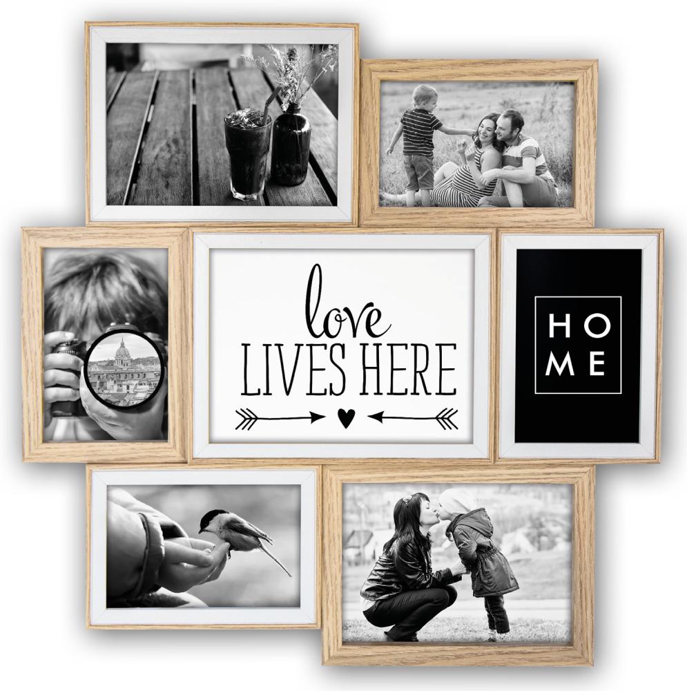 Elegantan kolaž-okvir od drveta s prostorom za 7 slika različitih veličina.