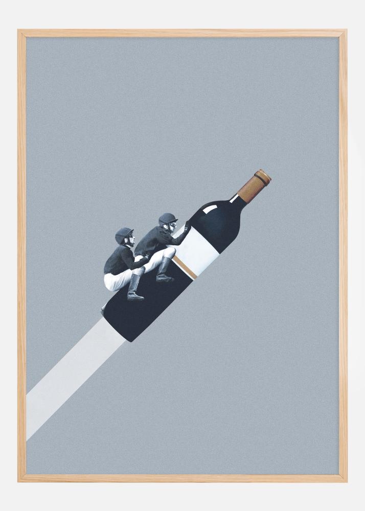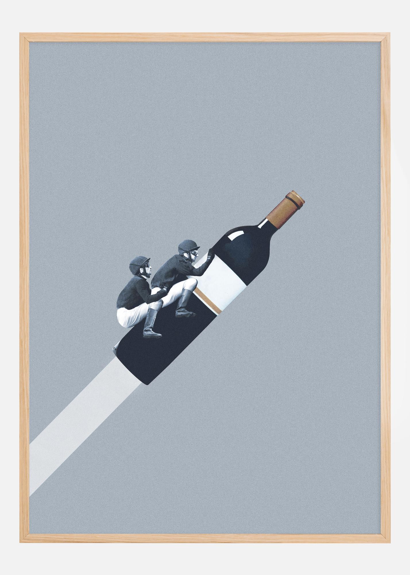 Ovaj jedinstveni i poticajni poster hvata maštoviti prizor gdje dvije osobe u klasičnoj jahačkoj opremi trijumfalno jašu na nagnutoj vinskoj boci. Scena je djelo kreativne mašte koja isprepliće tradicionalno s apsurdnim i predstavlja osjećaj avanture i bijega. Prikazuje kako dva jahača mogu svladati svakodnevne životne vinske valove s jednakom gracioznošću kao da jašu kroz valoviti krajolik.