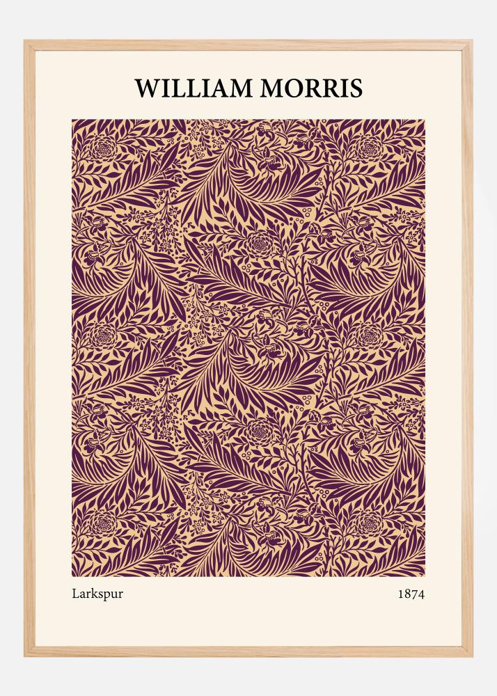 Ovaj smioni i oÄaravajuÄi uzorak Williama Morrisa je plakat koji oživljava klasiÄni dizajn "Larkspur" iz 1874. godine. S paletom živopisnih boja u nijansama bordo i bež, ovaj print hvata bit Morrisove sklonosti prema prirodi i uzorcima. Njegov majstorski rad s oblikom i bojom istiÄe svaki detalj liÅ¡Äa i cvijeÄa, ÄineÄi da plakat iskaÄe kao znaÄajan dekorativni naglasak.