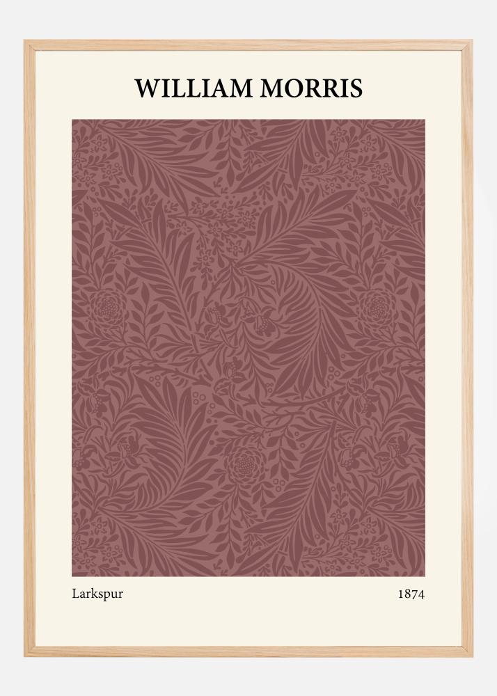 Ovaj poster je reprodukcija bezvremenskog djela Williama Morrisa "Larkspur" iz 1874. godine i prikazuje hipnotizirajući aranžman cvjetnih uzoraka u toploj i gostoljubivoj paleti boja. Dizajn, poznat po svojoj detaljnosti i organskoj estetici, klasičan je prikaz Morrisove ljubavi prema prirodi i njegove umjetničke vještine unutar pokreta Arts and Crafts. Savršen je za one koji cijene povijesne umjetničke otiske i žele dodati dašak viktorijanskog šarma svom domu.