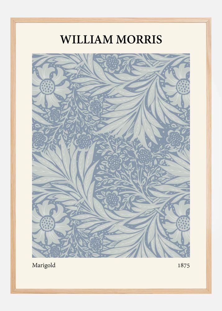Ovaj prekrasno izrađeni plakat Williama Morrisa prikazuje uzorak "Marigold" iz 1875. u zadivljujućoj plavoj paleti boja. Detaljnost uzorka i stil blizak prirodi potvrda su Morrisove sposobnosti stvaranja umjetničkih djela koja slave i odražavaju ljepotu prirode. Ovaj dizajn predstavlja zanatsku vještinu viktorijanske ere i uvažavanje ručno izrađenih predmeta pokreta Arts and Crafts.