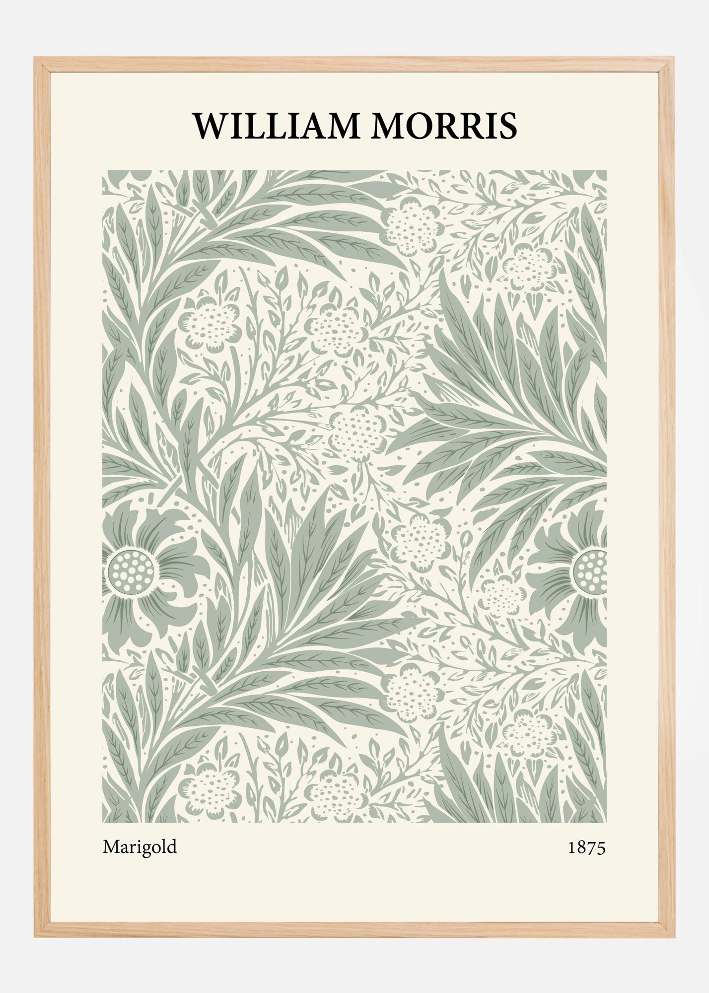 Ovaj upečatljivi poster prikazuje dizajn Williama Morrisa "Marigold" iz 1875. godine, koji prikazuje bogatstvo motiva inspiriranih prirodom, sve izrađeno s nepogrešivom vještinom i okom za detalje. Živa, ali suptilna paleta zelene boje tipična je za Morrisov dizajn i oživljava svaki list i laticu, čineći umjetničko djelo bezvremenskim klasičnim dodatkom za interijer.