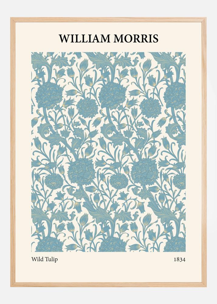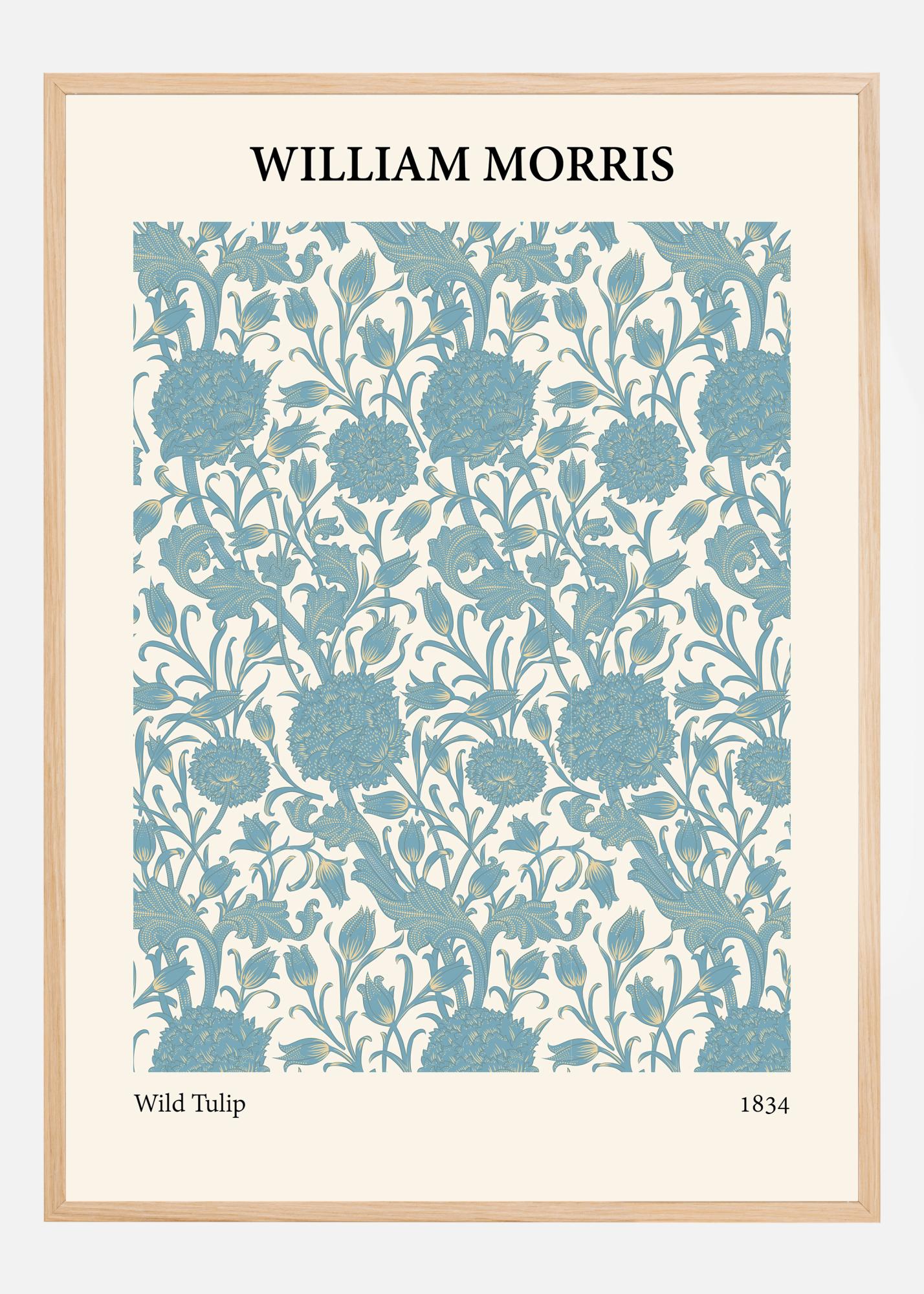 Ovaj poster Williama Morrisa, nazvan "Divlji tulipan", živopisna je prikaz britanskog pokreta Arts and Crafts s ljubavlju prema detaljima i složenosti prirode. To je ljepota za gledanje, s uzorkom divljih tulipana u spektru plavih nijansi, od nježne nebesko plave do intenzivne ponoćno plave, sve lijepo smještene na kremastoj pozadini koja ističe finoću uzorka.