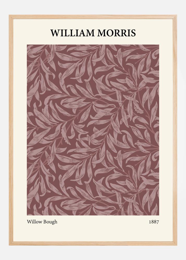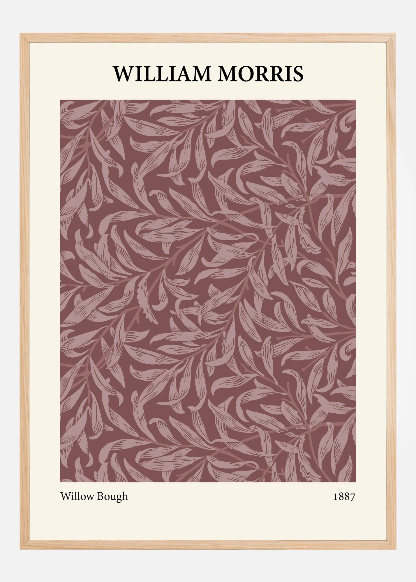 Ovaj istaknuti poster ističe ljepotu "Willow Bough" Williama Morrisa iz 1887. godine, koji je ovdje prikazan u toplim i bogatim crvenkastosmeđim tonovima koji podsjećaju na jesenje lišće ili cimet. Plesni vrbovi listovi protiv duboke pozadine daju osjećaj i pokreta i dubine, čineći ga jednim od najupadljivijih Morrisovih uzoraka.