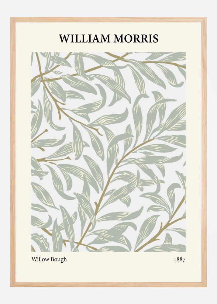 Ovaj svijetli i svježi poster prikazuje dizajn Williama Morrisa "Willow Bough" iz 1887., koji se odlikuje vijugavim granama i vrbinim lišćem u protočnom i prirodnom uzorku. Umirujuća zelena paleta boja ističe detaljno oblikovane listove i daje osjećaj mirnog vrta te povezanost s prirodom, što je bilo ključno u Morrisovom radu i u pokretu Arts and Crafts u cjelini.