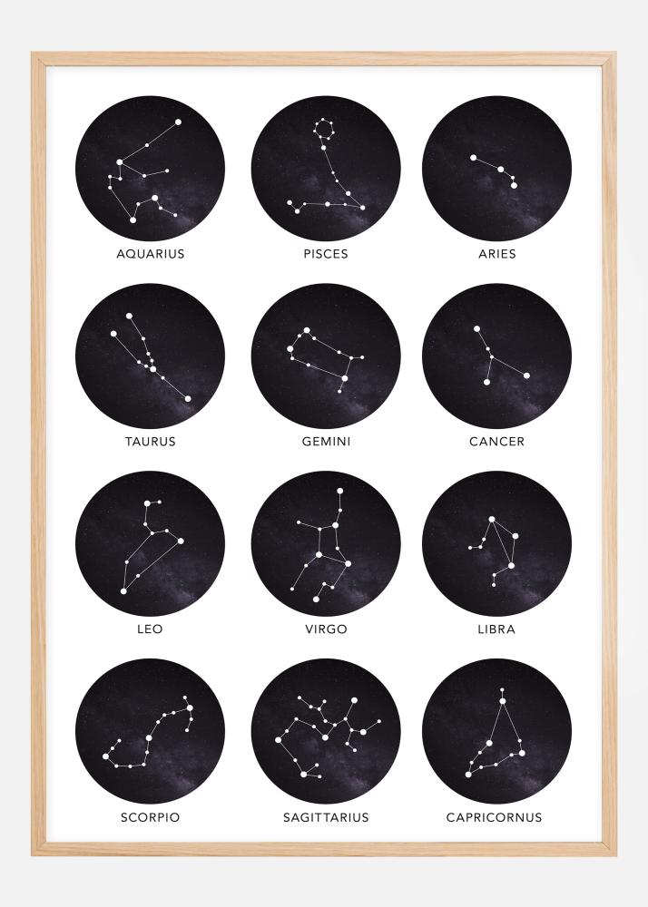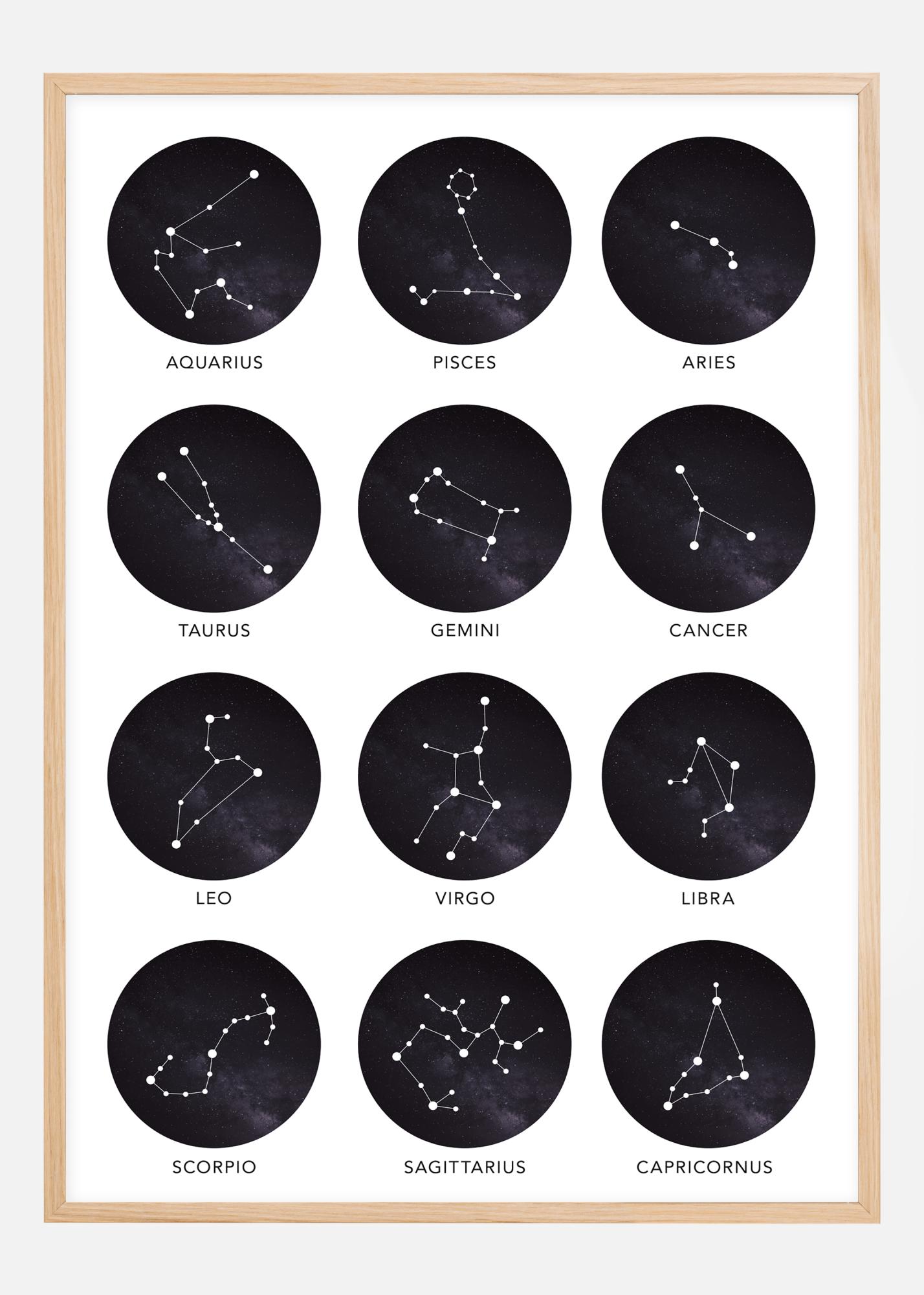 Poklonite poster sa horoskopskim znakom nekome koga volite ili se poÄastite neÄim lijepim. Ovaj stilizirani poster ima motive svih horoskopskih znakova, a ispod motiva su nazivi znakova na engleskom jeziku. Ne zaboravite odabrati odgovarajuÄi okvir za svoj poster!